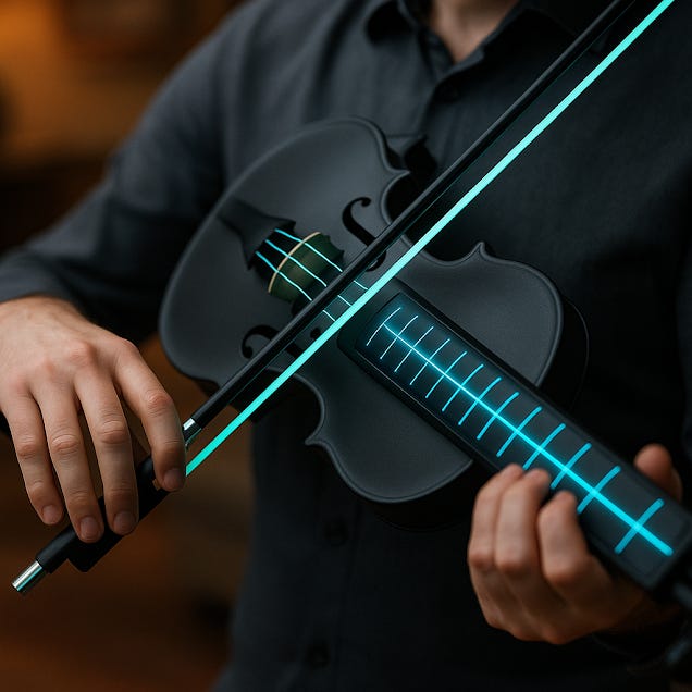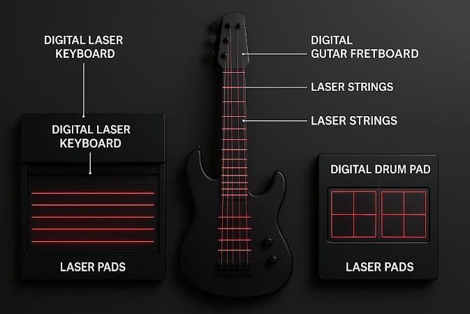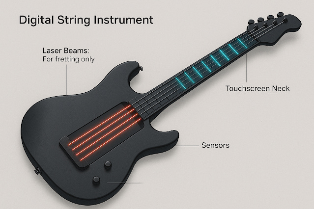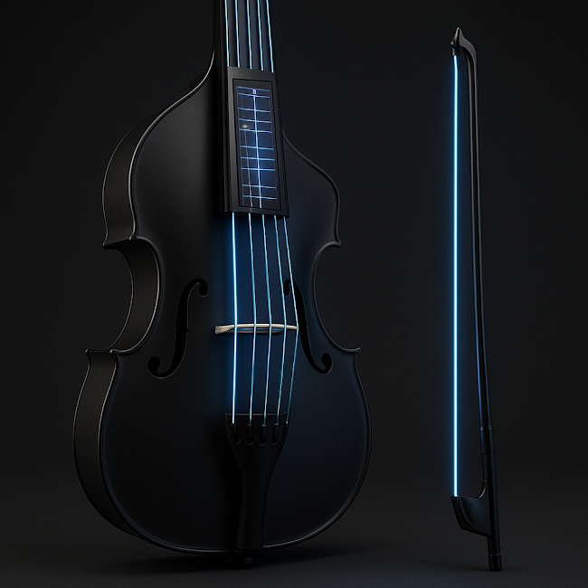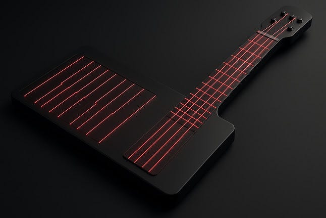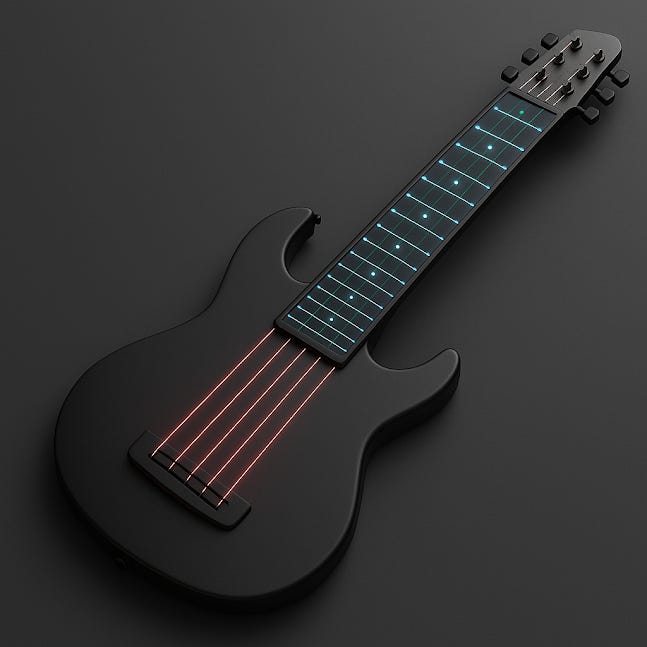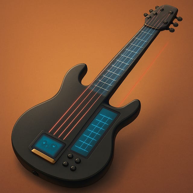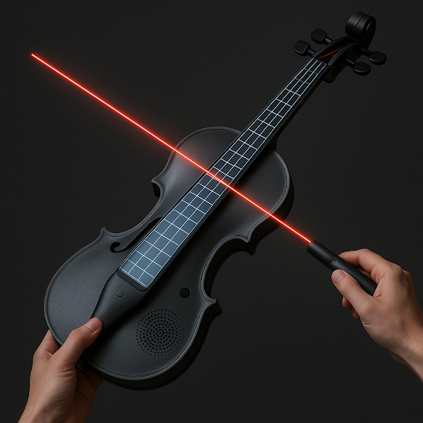 A next-generation violin, guitar, or bass using laser beams to replace physical strings.