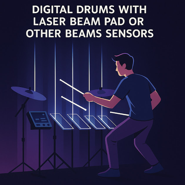 A full drum set based on laser beams and invisible sensors — no physical pads, pure responsiveness.