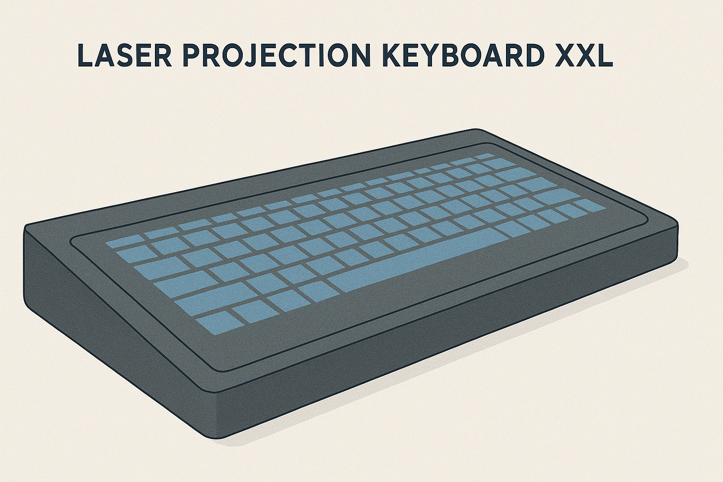 A full-size or compact laser-projected keyboard pad using beams instead of keys.