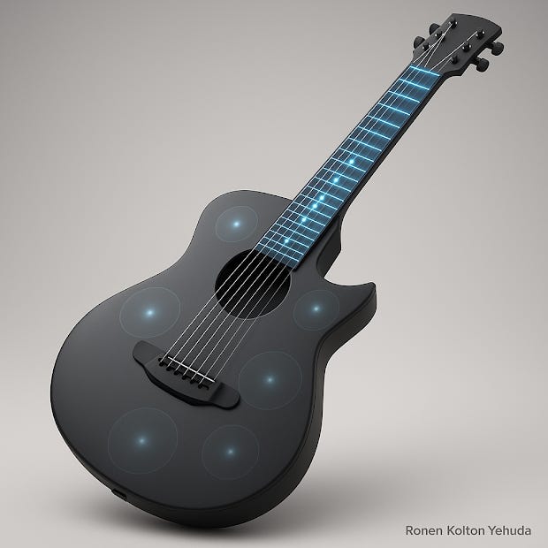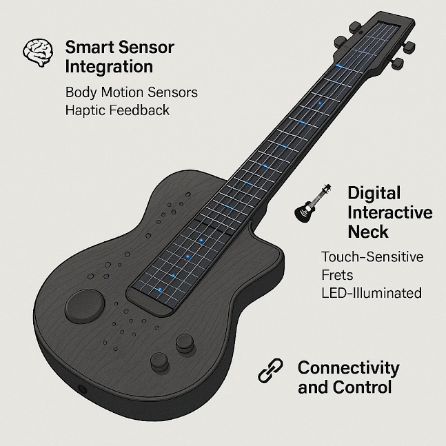 Combining physical strings with a digital touchscreen neck, it eliminates the need for manual tuning while offering authentic touch and playability.