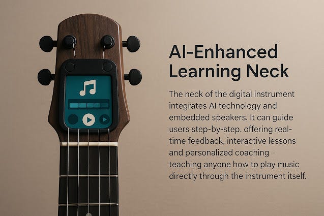 A smart digital neck module that can attach to any string instrument (traditional or digital) for learning and playing assistance.