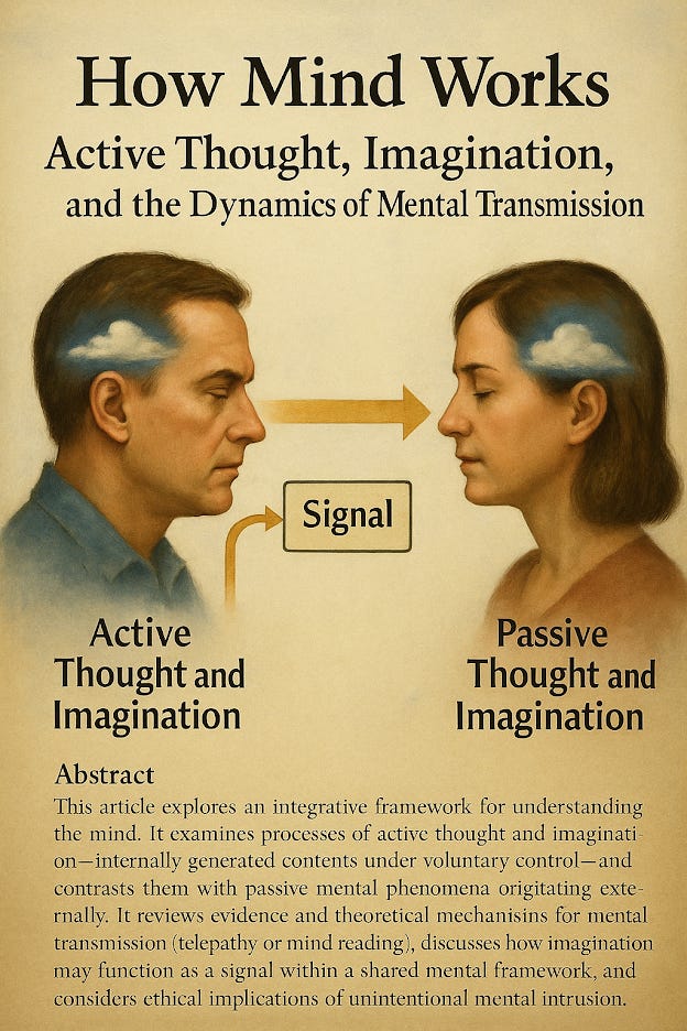 Drawing from neuroscience, psychology, parapsychology, and contemplative philosophy, it explores phenomena such as telepathic intuition, body and facial reflection, imagination as interaction, and the ethics of mental influence.