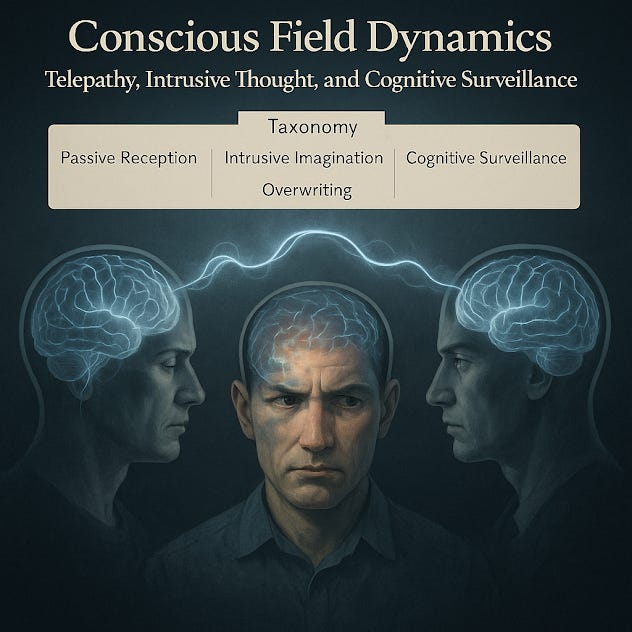 Intrusive thought may appear as mental noise, distracting imagery, or alien emotion. The individual may misidentify it as self-generated because it uses the same field substrate.