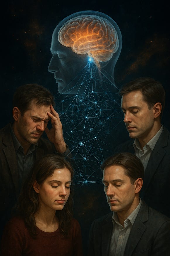 Instead of isolated minds, we may inhabit a collective network: each mind a node, each thought a transmission within an invisible ocean of awareness.
