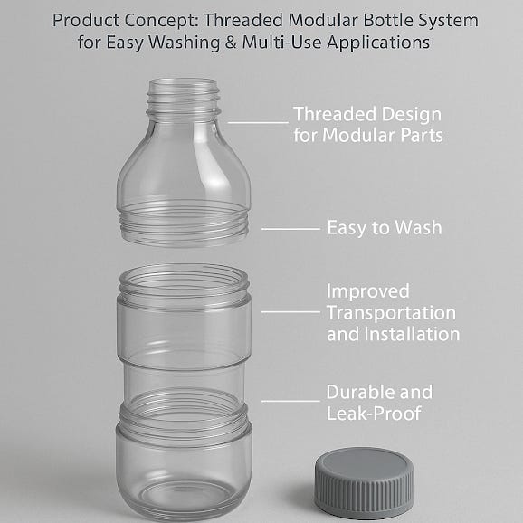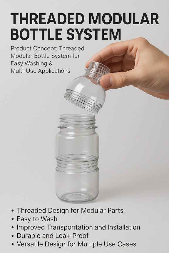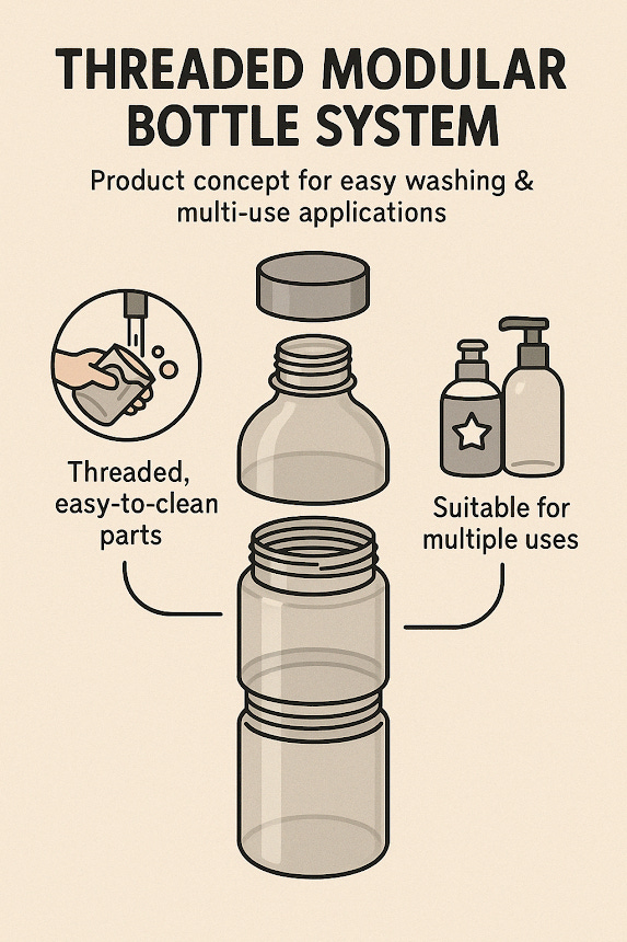 Product Concept: Threaded Modular Bottle System for Easy Washing & Multi-Use Applications