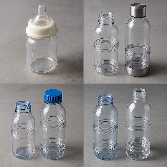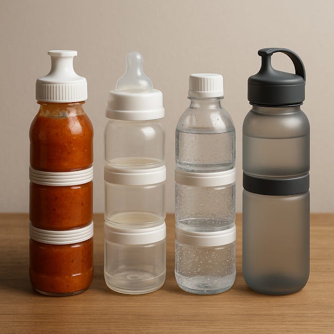 Sauce bottles, baby bottles, reusable water bottles, and drink containers