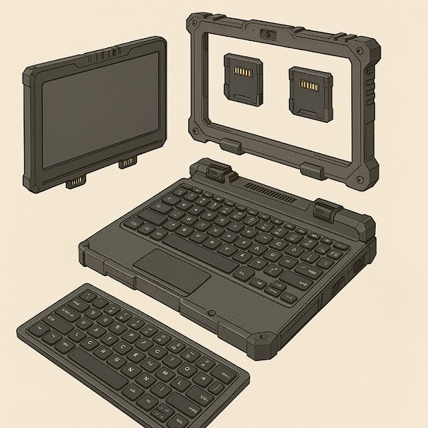 Unlike most modern devices that are sealed and hard to fix, the Tiny Resilient Mobile PC is modular. That means you can easily replace or upgrade components like: