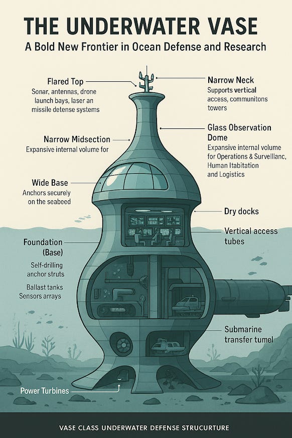 The Vase-Class Underwater Defense Structure is not simply a concept — it is a structural and strategic platform for an emerging undersea era. Engineered to endure, built to defend, and designed to adapt, it transforms the seafloor into an active operational domain for defense, diplomacy, and discovery.